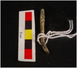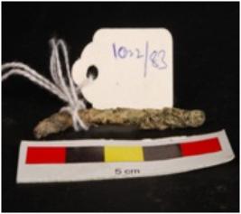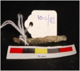 | Description / विवरण | Fragment of copper rod, broken in two piece, thin in character and surface is corroded. |