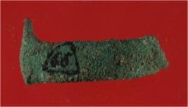 | Description / विवरण | Trench XC 6, Qdt 3-4, layer 2, depth 105 cms. It s a small copper piece. Corner of one end is pointed. Colour has become green due to presence of patina. |