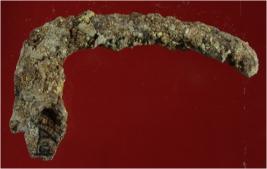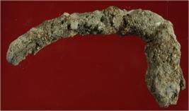 | Description / विवरण | Trench XC 6, Qdt 1-2, layer 4,depth 250 cm It is a piece of iron. It is curved and broken from both sides. Surface is uneven and corroded. |