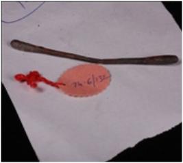 | Description / विवरण | Copper Antimony rod with bulbous ends and slighty bent in the middle. |