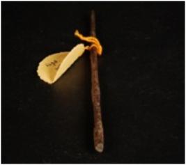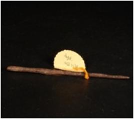 | Description / विवरण | Copper antimony rod. Long in size with thick at one end and pointed at other end. Uneven and polished surface. |