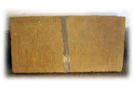 | Description / विवरण | Seven incised human figures standing in sambhang posture. Human is shown taking bow in left arm and arrow in right arm |