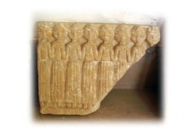 | Description / विवरण | Seven deities of Chatrapal, fully dressed and engraved design. Two arms are attached to each other. It is a damaged part of a stone sculpture |