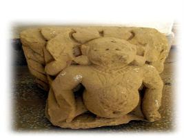 | Description / विवरण | It is a sculpture of a Keechak, having big round stomach, engraved necklace design. It has two damaged arms, broken legs. It seems to be in sambhang posture |