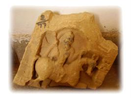 | Description / विवरण | It is a memorial pillar of a horse rider taking bridal in left arm. Legs of horse is broken except body portion. Horse is shown in racing posture. Horse rider has sword axe in his right hand |
