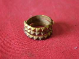 | Description / विवरण | This is a finger ring having spring design. It is three folded with raised geometrical design. |