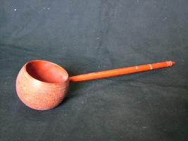 | Description / विवरण | A laddle spoon , heavy hemispherical bowl connected with a long stick. It is enamelled having lacquer work. |