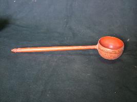 | Description / विवरण | A laddle spoon having hemispherical bowl connected with a long stick. It is enamelled having lacquer work. |