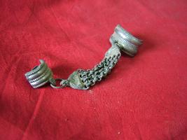| Description / विवरण | A foot ornament in chain form. Chain is supported by two half circular rings from outside and has another circular ring from inside with the help of two hooks. |