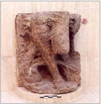 | Description / विवरण | The Sculptural fragment depicting a standing female figure. Her upraised left foot rests aganst the brnches of a tree. It is mutilated above waist portion. |