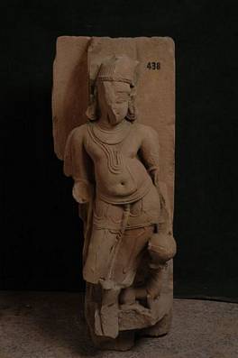 | Description / विवरण | Architectural stone slab showing standing figure of god Siva. He holds a ghata in only surviving hand. Half of the face is also cut off. |
