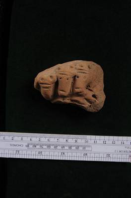 | Description / विवरण | Fragment of a toy chariot preserving heads of three horses. |