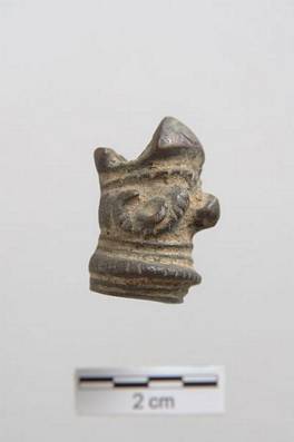 | Description / विवरण | Cylindrical shape object. Tip portion is bifurcated into high and low raised portion in two sides. Rest of the body is decorated with bands of high relief. |