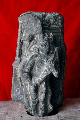 | Description / विवरण | Fragment of a Vishnu stele representing Saraswati holding her vina which is now broken. |