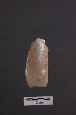 | Description / विवरण | Irregular shape flake of Turbinella pyrum species. |