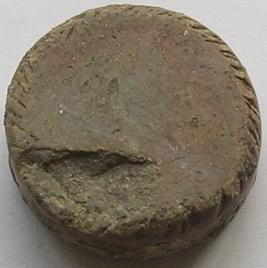 | Description / विवरण | A terracotta disc decorated with nail impressed desins on both sides of periphary, rest part is plain and free of decoration, treated with red slip. It is partly damaged. |