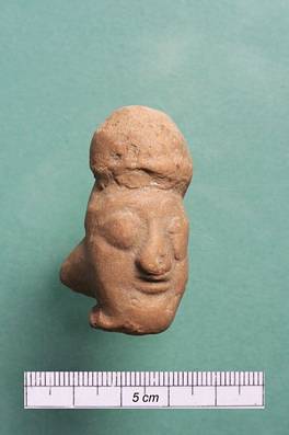 | Description / विवरण | Terracotta head having a round object above head left ear lost. |