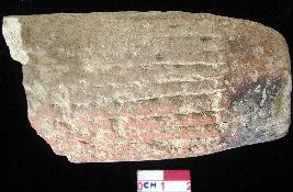 | Description / विवरण | Fragmentary terracotta skin rubber with horizontal ribs all over the cylindrical body. The rib so rough that smilingly it is not possible for human use. It might have been used for animals. |