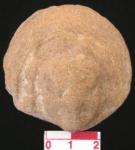 | Description / विवरण | A terracotta plaque, single mould made showing a haloed female face, which has rubbed off, showing the trace of eyes, nose mouth and chin are seen. |