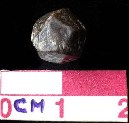 | Description / विवरण | A stone bead polygonal, blakish in colour, irregular shape. |