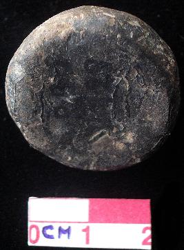 | Description / विवरण | A terracotta gamesman conical the upper surface is decorated with series of loops. |