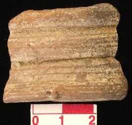 | Description / विवरण | Fragment of a terracotta bracelet, red in colour, rectangular section, exterior decorated with grooves while interior is plain. |