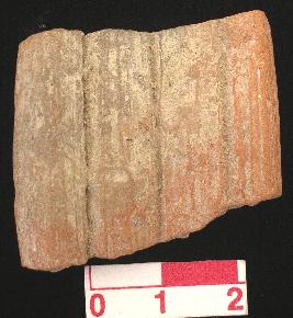 | Description / विवरण | Fragment of a terracotta bracelet, rectangular section, horizontal grooves on external surface, while inner surface is plain, red in colour. |