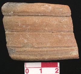 | Description / विवरण | A terracotta bracelet, red in colour, rectangular section, exterior decorated with horizontal grooves while interior is plain. |