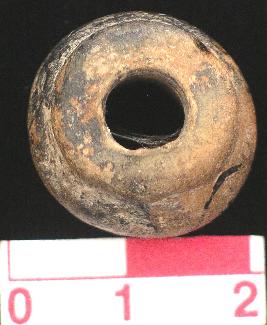 | Description / विवरण | A terracotta glut shaped bead, red in colour, a ring base on the top like rim of a ghat. |