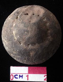 | Description / विवरण | A terracotta gamesman , conical with two terrace and punches. |