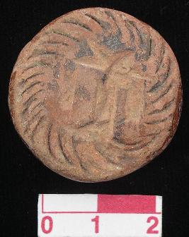 | Description / विवरण | A terracotta disc, red in colour, traces of red slip seen all over which is being peald off, notches on periphery on both sides. The central portion of one side is slightly damaged. |
