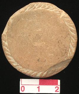 | Description / विवरण | A terracotta disc, reddish in colour, traces of red slip seen all over, notches on periphery on both sides, central portion of both sides are plain and smooth. |