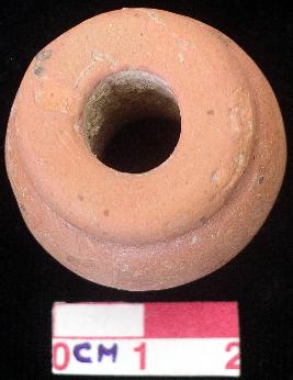 | Description / विवरण | Terracotta ghat shaped bead, red in colour. |