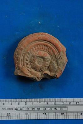| Description / विवरण | Circular fragment of a toy chariot with a lotus rosette in the centre. |