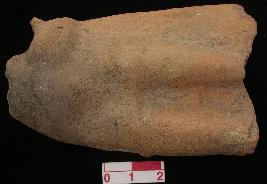 | Description / विवरण | A terracotta plaque, male figurine made with single mould, portion above the stomach, both the arms and feet are missing. The remaining left hand is akimbo showing the thumb and the fingers. The drapery covers up to the knees as shown by horizontal line. |