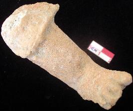 | Description / विवरण | Fragmentary terracotta showing human figures in sitting posture, red in colour, traces of red slip seen, leg toy with fingers, heel damaged, portion above knee is damaged. |