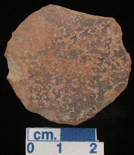 | Description / विवरण | A terracotta hopscotch, red in colour, irregular but round section. |