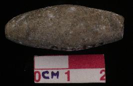 | Description / विवरण | A terracotta barrel shaped bead, grey in colour, a hole across in center. |