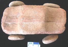 | Description / विवरण | A terracotta toy, made of a car, hand made, rectangular, the top is flat, the wheels are fixed in thin iron axle. All three wheels are intact while 4th is broken. The windos are seen both sides. |