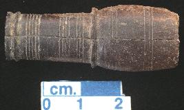 | Description / विवरण | A chilam made of wood, half upper portion is barrel shaped and half lower portion is cylindrical. It is decorated with carving,a round circle made on middle and on bottom, other decorative pattern with multiple incised circles made on the body. A vertical broad hole across. |