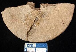 | Description / विवरण | Two fragment of a terracotta wheel with a hole in the centre, buffish, semi circular. |