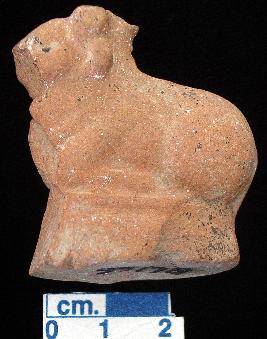| Description / विवरण | A terracotta couchant bull Nandi firgurine, red in colour. It is made with double mould, snout is broken, ears and horns are combined with earch other, hump made on back which is partly damaged, fore leges are turned from knees and mounted on a short pedestal. |