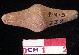 | Description / विवरण | Terracotta barrel shaped bead with a mid ridge is seen on it. It is hand made and red in colour. |