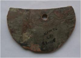 | Description / विवरण | Pottery hopscotch, broken, a hole in centre. |