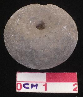 | Description / विवरण | Terracotta aricanut shaped bead, greyish in colour. |