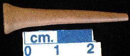 | Description / विवरण | A games man, cylindrical, tapering vermilion stick, the bottom is flat and top is pointed, bearing red colour slip all over. |