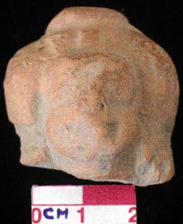 | Description / विवरण | Terracotta head with smiling face having well hair decoration and hair knot Juda on head |