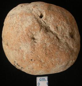 | Description / विवरण | Fragment of a terracotta sling ball, red |