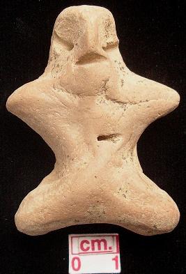 | Description / विवरण | A terracotta archaic human figurine with round head, pinched nose, incised eyes, slit open mouth, short out stretched stumpy arms, short wide bridged stumpy legs, punched navel, hadmade. |