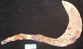 | Description / विवरण | An iron Sickle. Badly rusted. |